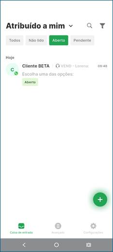 Aberto : Mostra todos as mensagens em aberto(Não iniciado atendimento), conforme a opção de mensagem atribuída(Muito usado)