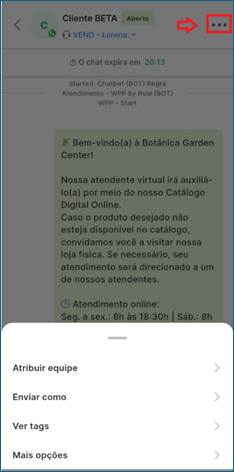- Use o menu de 3 pontos(Acima, a direita) no chat (Imagem abaixo):